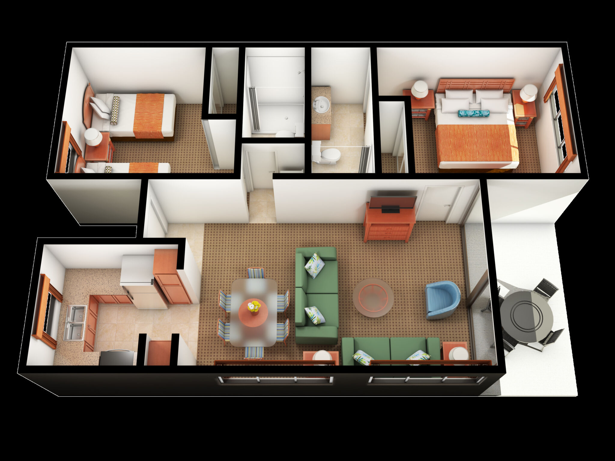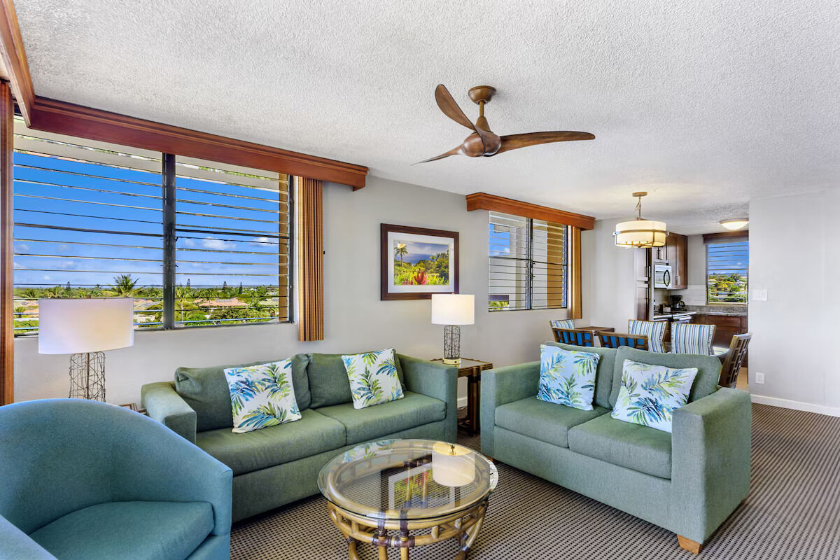 The Maui Beach Vacation Club offers one-bedroom and two-bedroom suites fully equipped with all the comforts of home - full kitchens include a refrigerator, stove, microwave, and coffee maker while the dining area lets you enjoy meals together. One-bedroom units feature a king bed in the bedroom, a queen sleeper sofa in the living area, and one bathroom and are well-suited for up to four. Two-bedroom units feature a king bed in the master bedroom, two twin beds in the guest bedroom, a queen sleeper sofa in the living area, and two bathrooms - enough room to sleep up to six guests!
