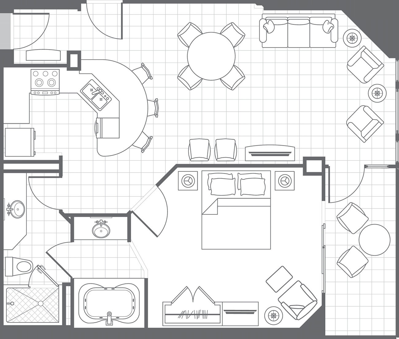 • 1 King, 1 Queen, 2 Sofa beds