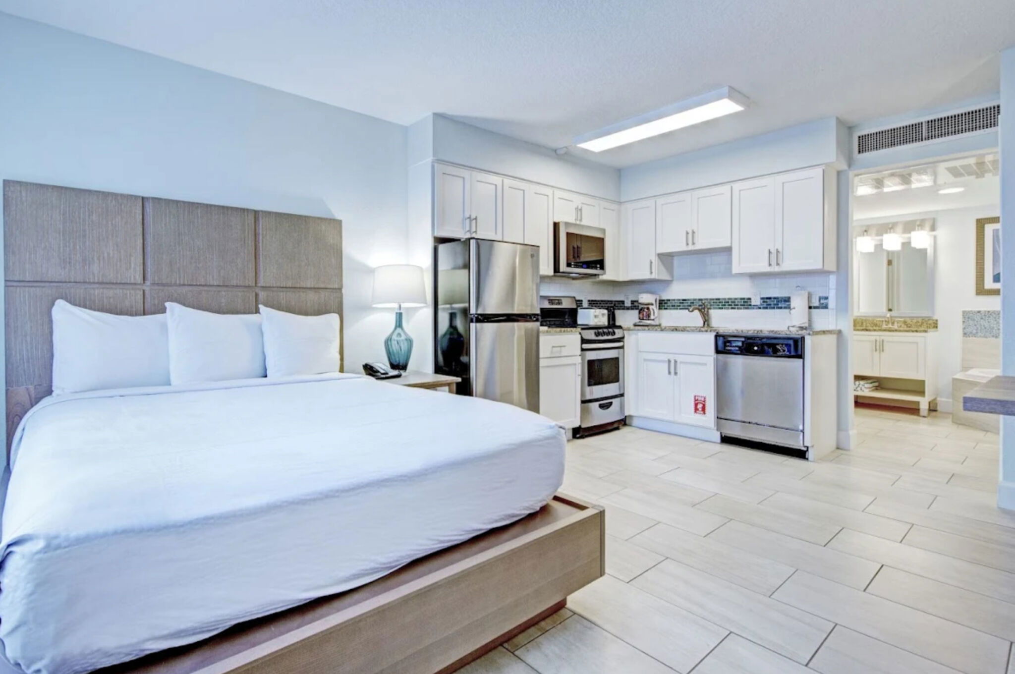 Grand Seas Resort's timeshare accommodations are well-suited to all groups - select from studio, one-bedroom suites, two-bedroom suites and townhouse units. Studio units sleep two or four and include a queen size Murphy bed, and queen sleeper sofa in four-person units. One-bedroom units sleep four and offer a king bed in the private bedroom and a queen-size Murphy bed in the living area. Two-bedroom units sleep six to eight people and offer a king bed in the master suite, queen bed in the guest bedroom, and a queen sleeper sofa in the living area. Townhouse units are two story and feature a king bed in the master bedroom, and queen sleeper sofa in the living area. All accommodations include a full kitchen and whirlpool bathtub.