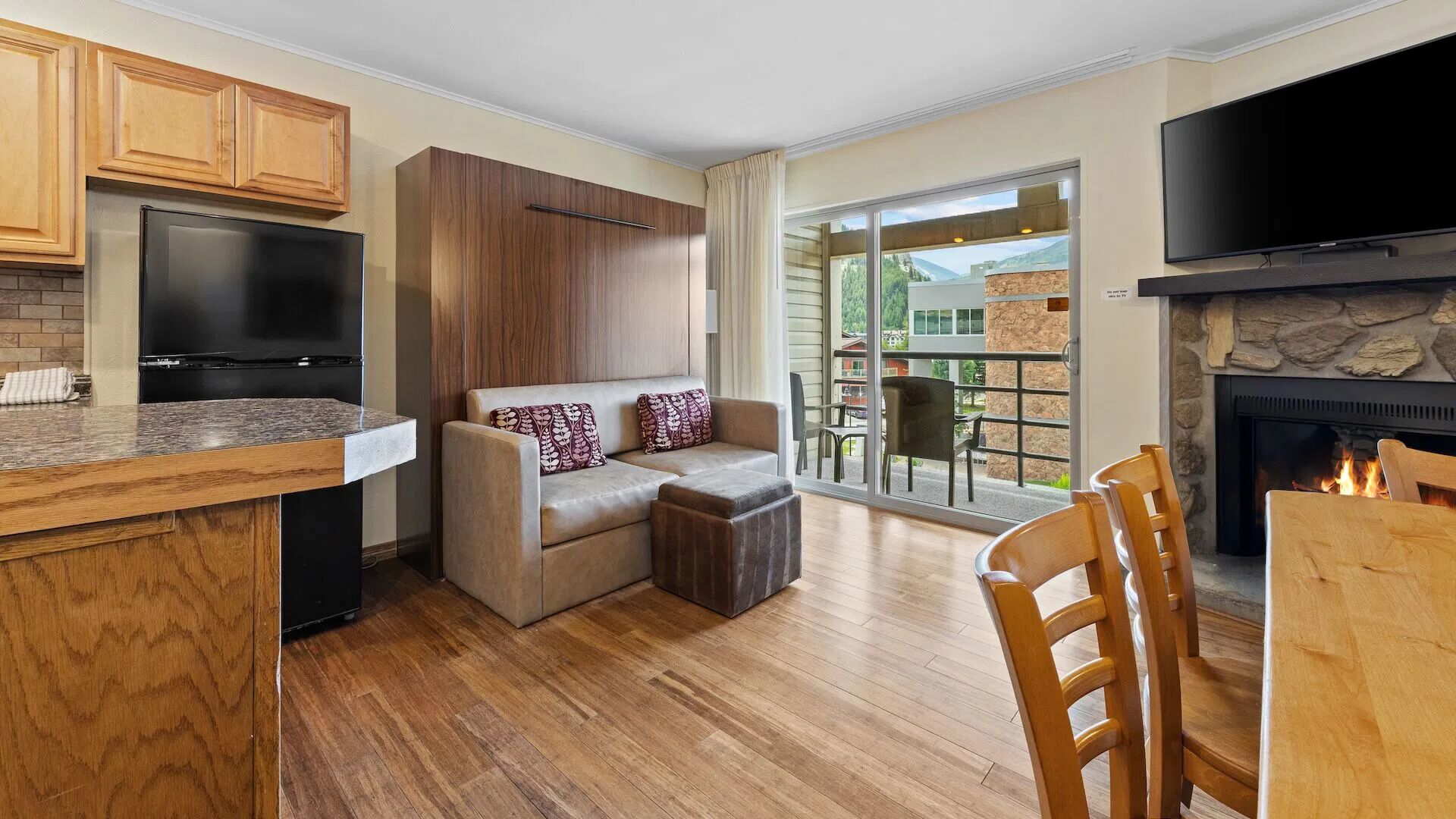 At The Christie Lodge, you'll enjoy coming back to your one or three-bedroom villa at the end of the day. Each suite features a kitchenette, dining table, fireplace, queen-sized bed, queen-sized sleeper sofa, child size daybed, television, telephone, balcony or patio and complimentary Wi-Fi access. One-bedrooms are well-suited for four guests, while three-bedrooms can accommodate up to eight.