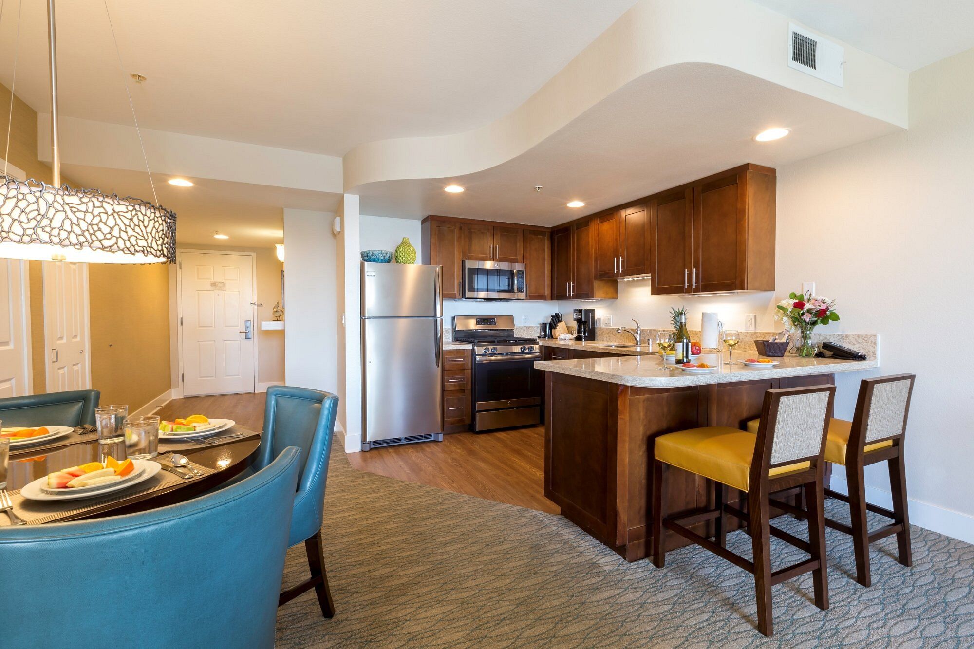 Spacious and bright, comfortable and well-appointed, the one and two bedroom villas at the Carlsbad Seapointe Resort provide a step up from your average hotel experience. Contemporary décor, designer furnishings and touches like vaulted ceilings and marble countertops lend an upscale ambiance to every villa. Full kitchens, expansive living areas with fireplaces and even dining room tables ensure enough room for everyone. In addition, all villas are fully air- conditioned, offer free Wi-Fi and usually feature ocean views.