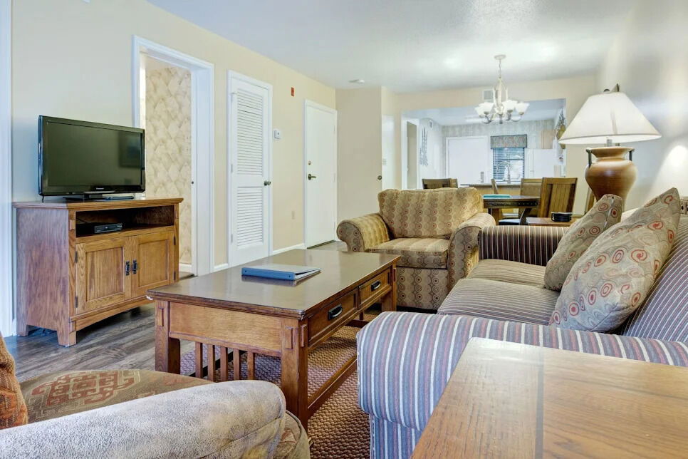 Gatlinburg Town Square is cradled in a valley bordering the Great Smoky Mountains National Park, and only minutes from Dollywood. Most apartments offer fireplaces, and private balconies. The resort also has a heated indoor swimming pool, exercise room, children's playground, and covered parking, as well as being beautifully landscaped with a picturesque waterfall. From Town Square, it's just a quick walk to the heart of downtown Gatlinburg.