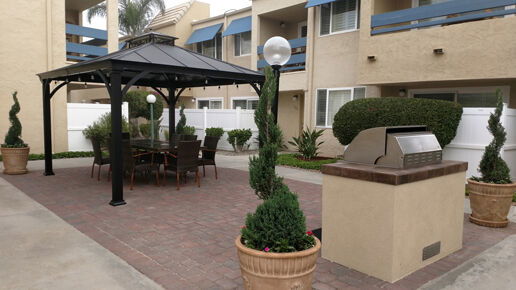 Sand Pebbles Resort lies just a block from the beach, set on beautifully landscaped grounds packed with unique and exotic tropical plants, a lush fountain area with a tumbling waterfall, assorted palm trees and giant bird of paradise plants. The pool and spa area have chaise lounges, patio dining tables with chairs, umbrellas and two gas-fired barbecue grills.
