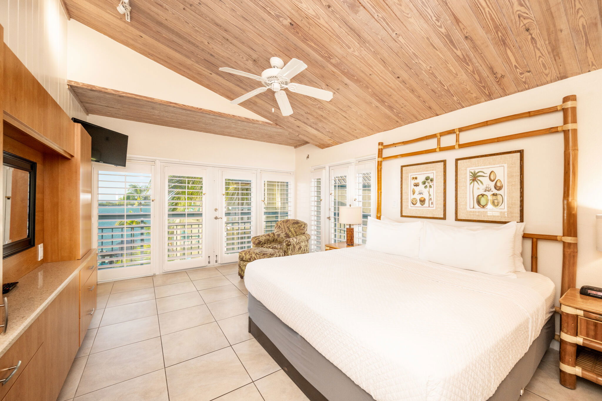 The Galleon Resort offers a multitude of accommodations in studio, one-bedroom and two-bedroom configurations. Studios house two people and are equipped with a small refrigerator, coffee maker and microwave oven. One-bedroom suites sleep up to four while most two-bedroom suites sleep up to six, while both include a full kitchen, dining area and decked out living area. Each is lovingly furnished with sandy earth tones, rattan furniture and tropical prints that perfectly set the mood for your stay in Key West.