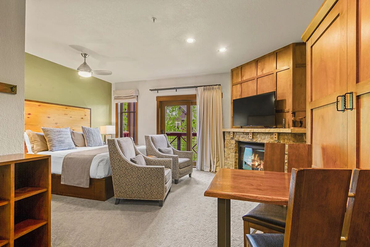 Hyatt Main Street Station is composted of luxurious studios and two and three-bedroom residential-style suites located directly on Main Street. All rooms boast spectacular views and come complete with rustic lodge décor, full bathrooms with jetted tubs, kitchenettes or fully equipped kitchens, large televisions with DVD players, high-speed Internet access, gas fireplaces, and in-suite washers and dryers.