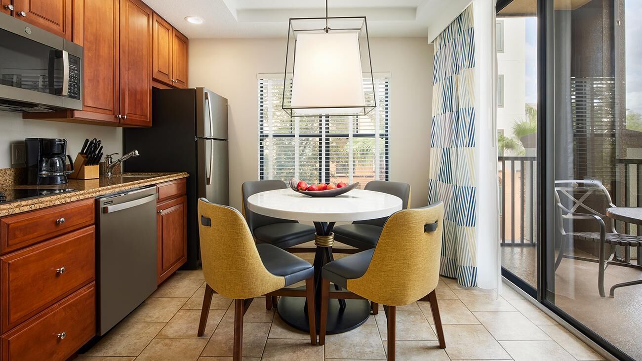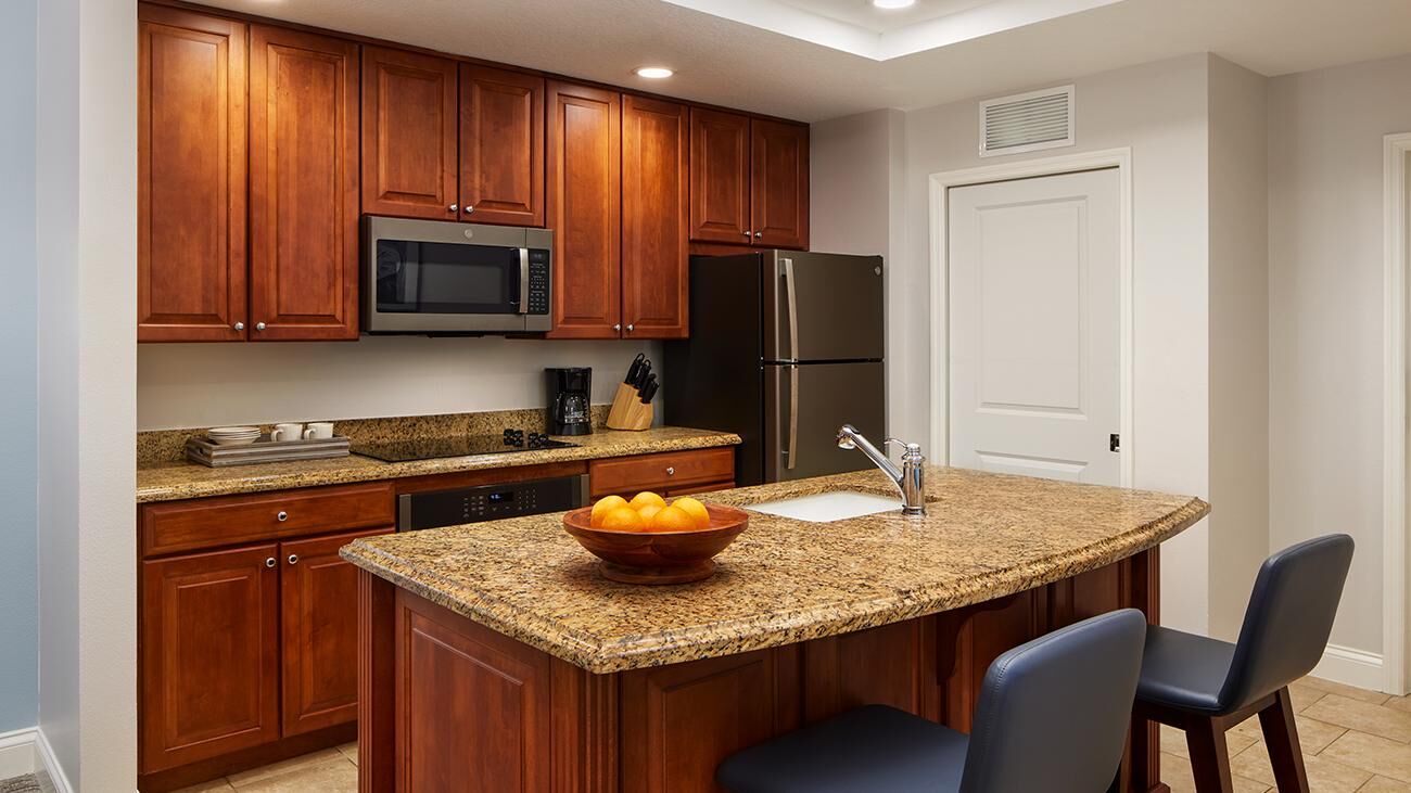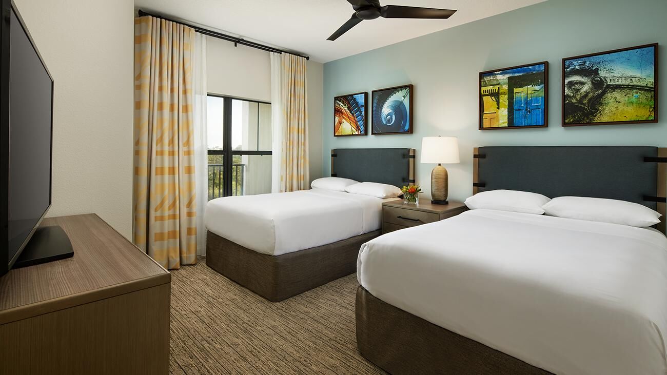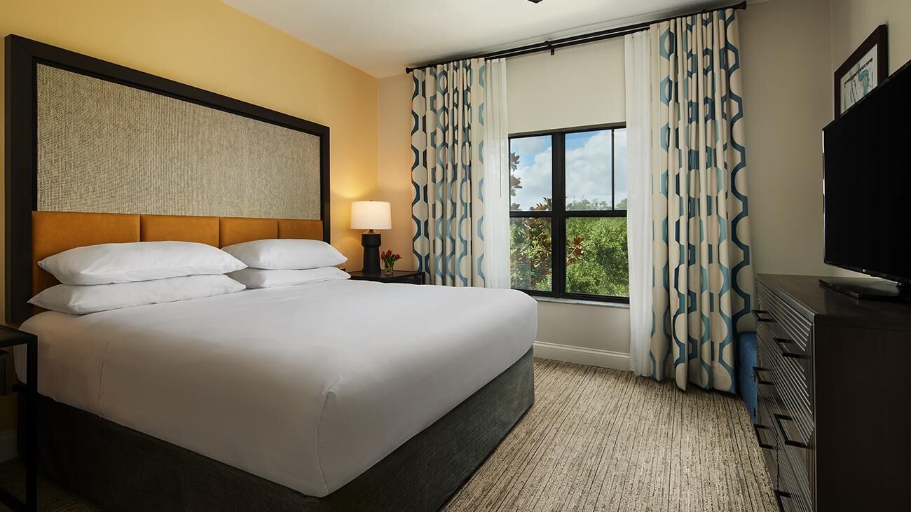 Winding throughout Sheraton Vistana Villages are spacious one-, two-, and three-bedroom timeshare villas. Offering all the luxuries of a resort home, villas are equipped with a full kitchen, whirlpool in the master bathroom, TV with DVD player and private balcony or patio. These sleek and modern villas are also outfitted in bright colors, glossy woods and premium linens that evoke the sun-soaked spirit of Florida. And of course, all villas feature complimentary Wi-Fi access.