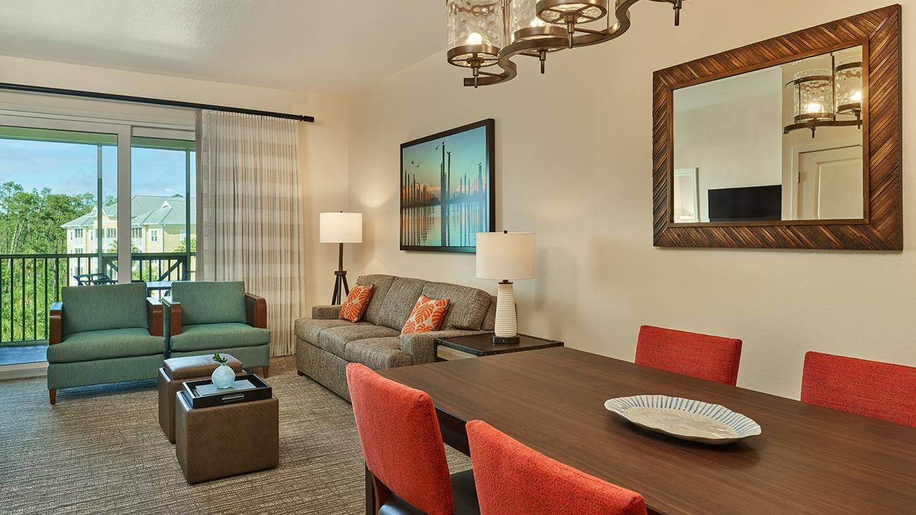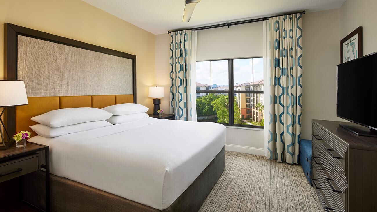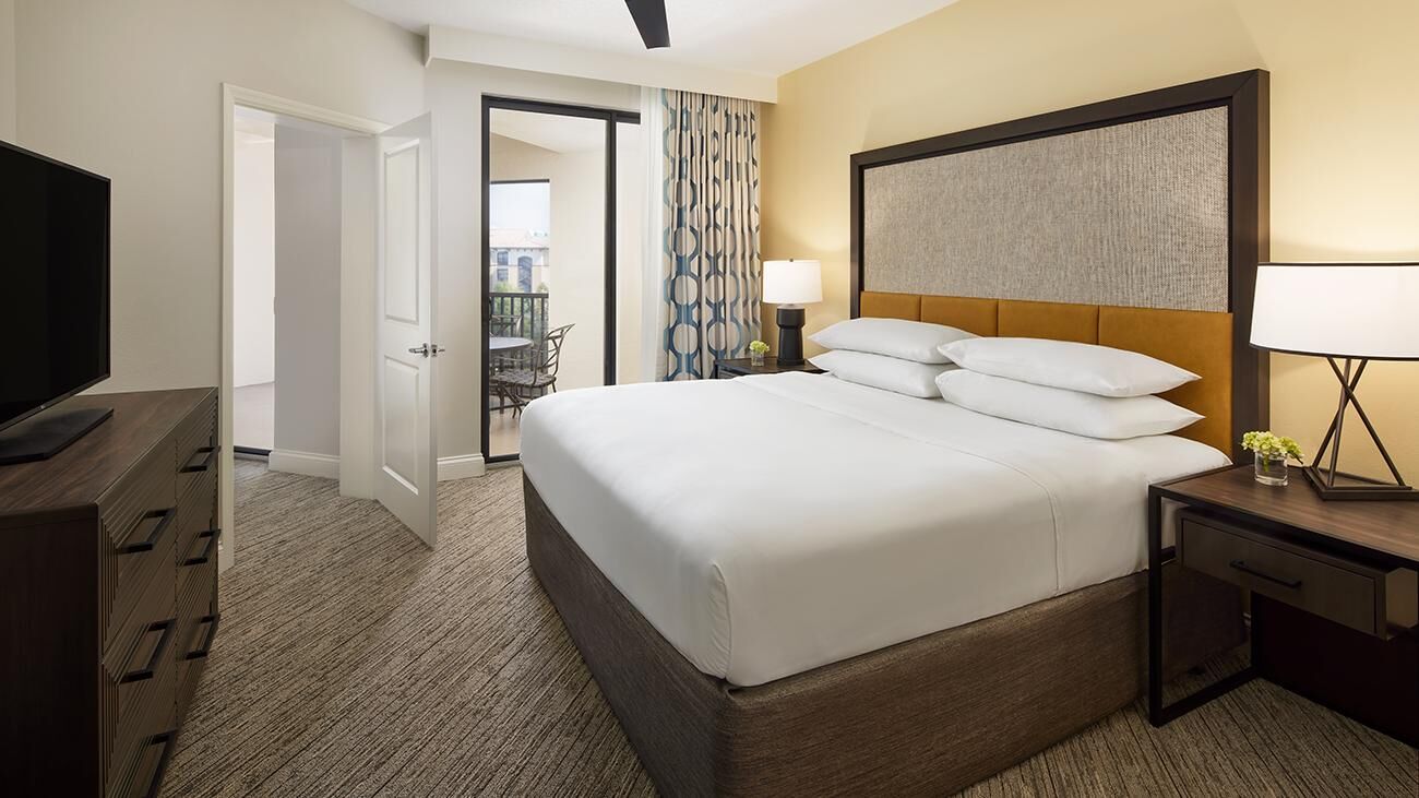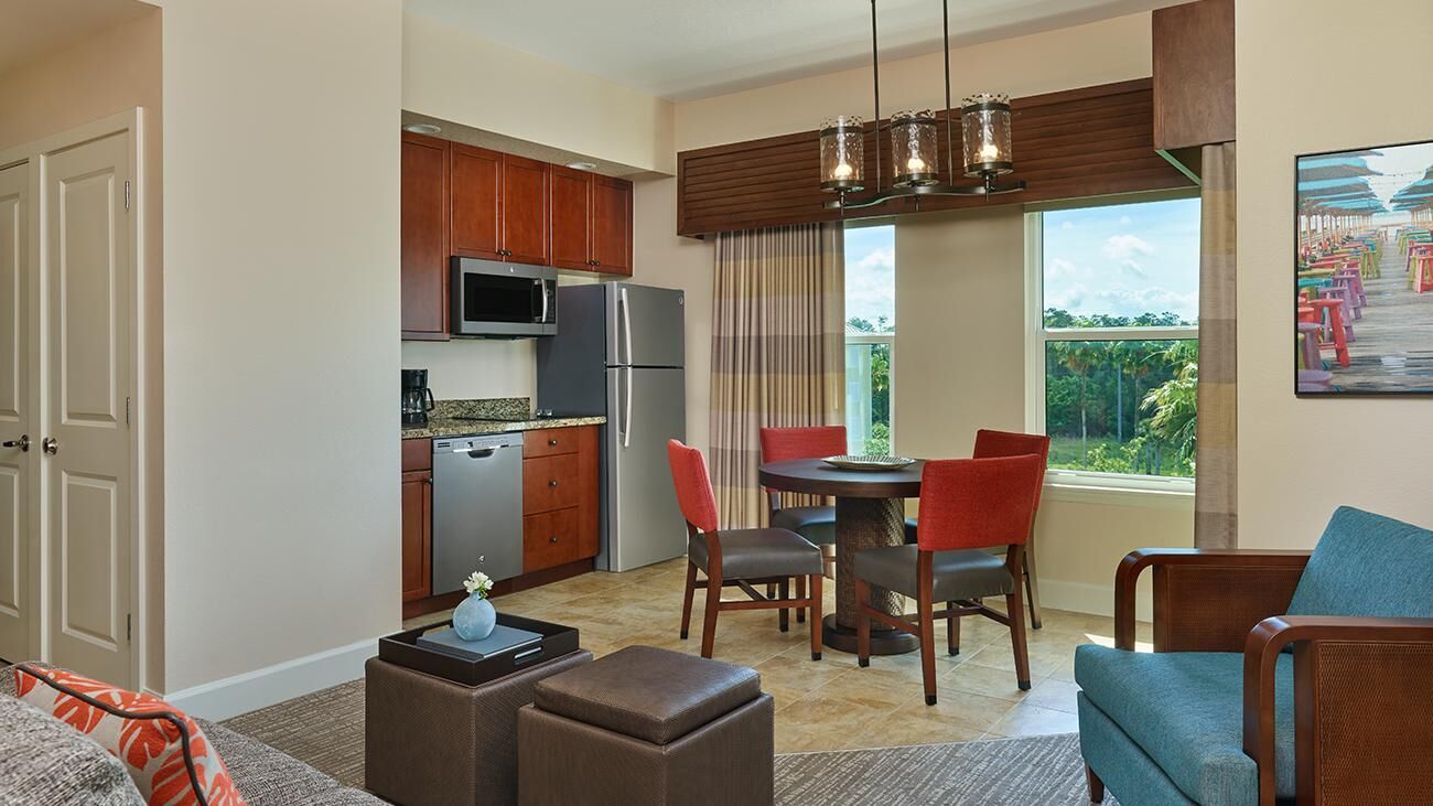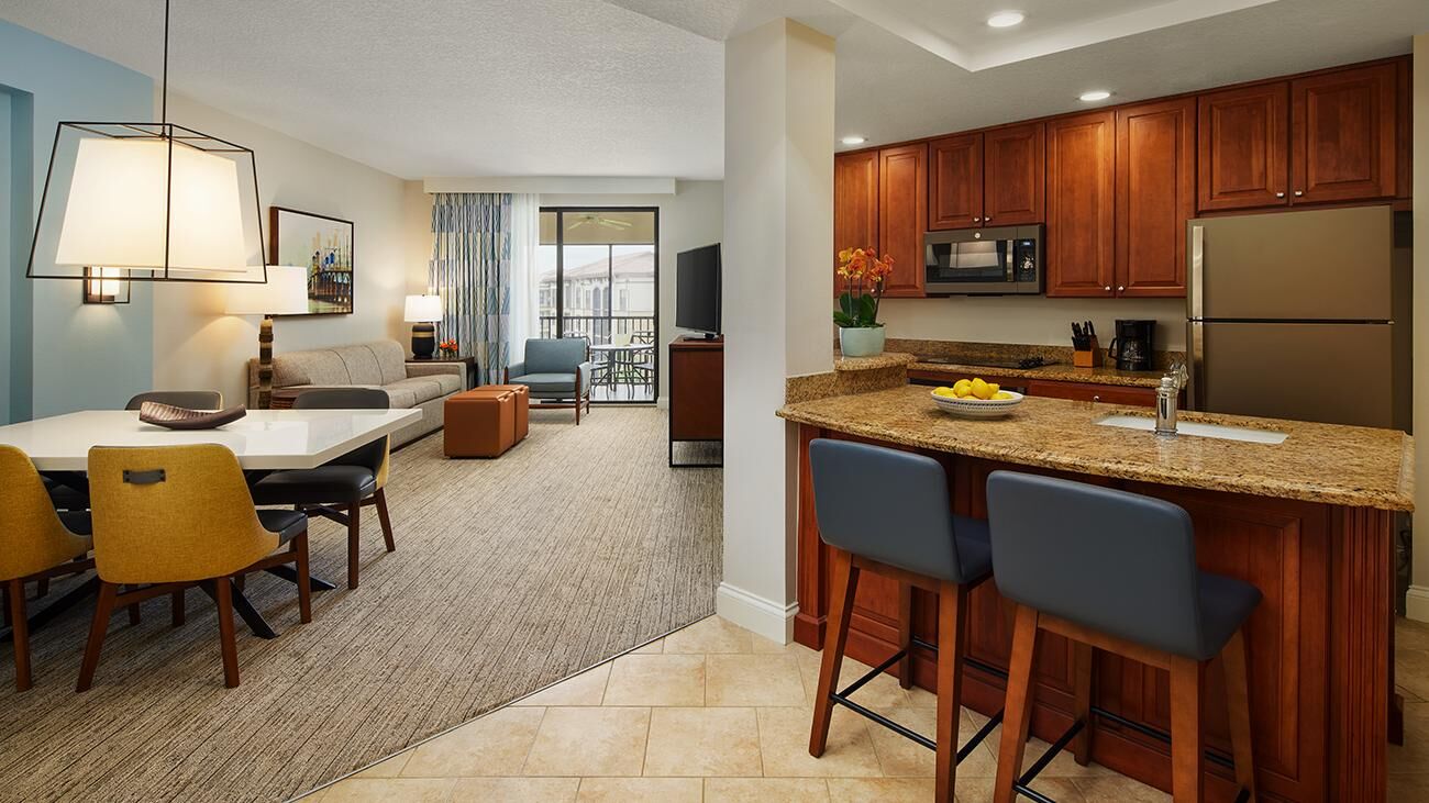Winding throughout Sheraton Vistana Villages are spacious one-, two-, and three-bedroom timeshare villas. Offering all the luxuries of a resort home, villas are equipped with a full kitchen, whirlpool in the master bathroom, TV with DVD player and private balcony or patio. These sleek and modern villas are also outfitted in bright colors, glossy woods and premium linens that evoke the sun-soaked spirit of Florida. And of course, all villas feature complimentary Wi-Fi access.