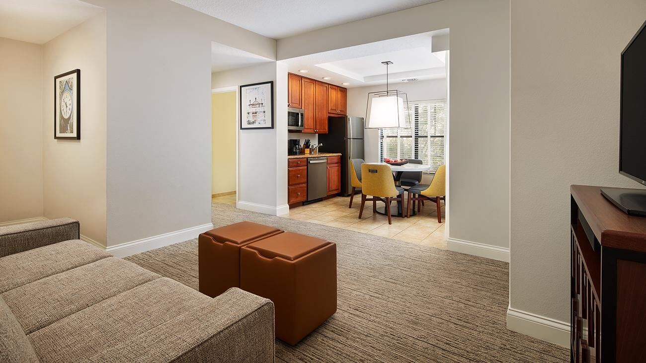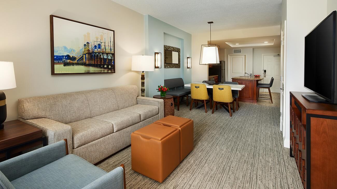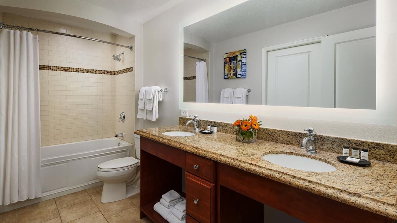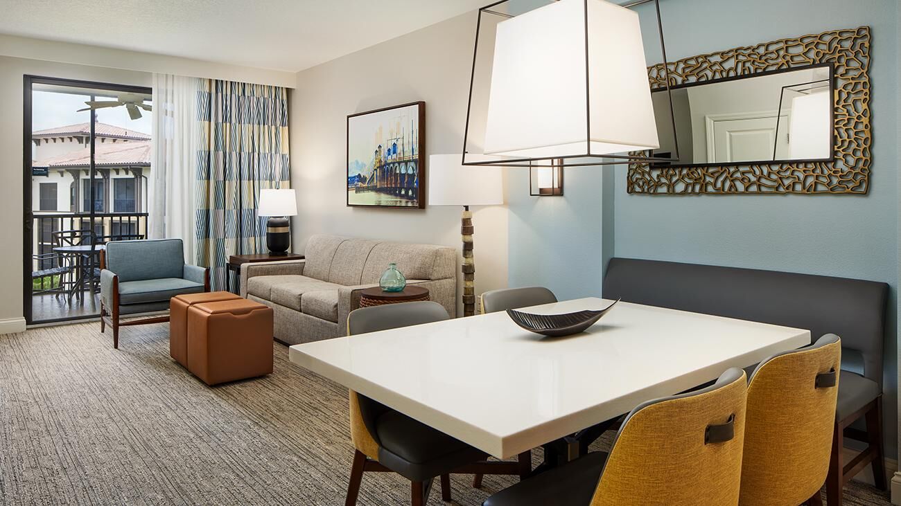 Winding throughout Sheraton Vistana Villages are spacious one-, two-, and three-bedroom timeshare villas. Offering all the luxuries of a resort home, villas are equipped with a full kitchen, whirlpool in the master bathroom, TV with DVD player and private balcony or patio. These sleek and modern villas are also outfitted in bright colors, glossy woods and premium linens that evoke the sun-soaked spirit of Florida. And of course, all villas feature complimentary Wi-Fi access.