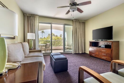 The Point at Poipu features lovely one-bedroom and two-bedroom timeshare accommodations with all the comforts and conveniences of home. Master bedrooms feature a king-size bed and large bathroom with separate soaking tub and shower stall. Kitchens are fully equipped with granite counter tops, range and oven, microwave, refrigerator, dishwasher, utensils, cookware, dishware, and dining area. Living rooms have complete entertainment centers, and private lanais open to the resort's lush gardens or the majestic span of the Pacific Ocean.