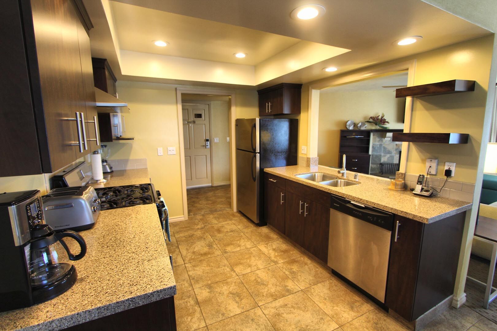 Each of Four Seasons Pacifica's unique, spacious, two or three-bedroom suite offers a living room, separate bedrooms, fully-equipped kitchens with modern appliances, and whirlpool baths. Stone fireplaces, vaulted ceilings, granite countertops and ultra-sleek, modern decor serve to create a luxe, stylish atmosphere that still exudes San Clemente's laid-back and beach vibe.