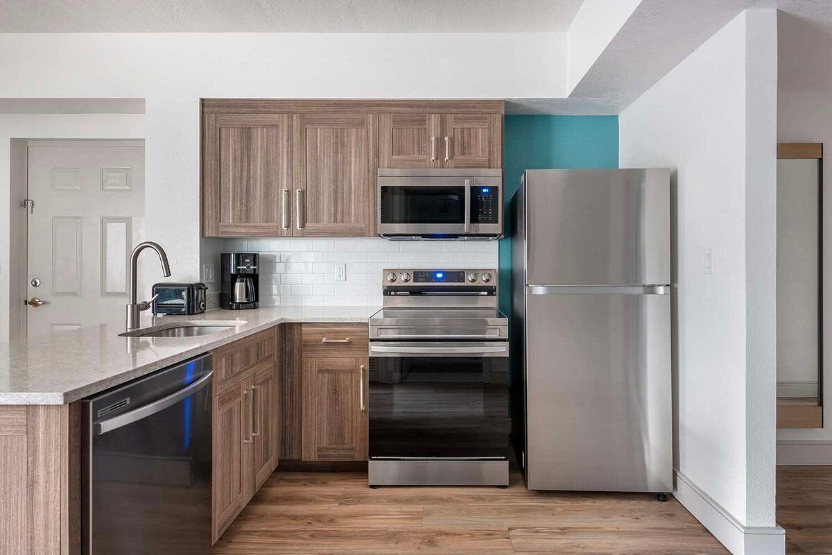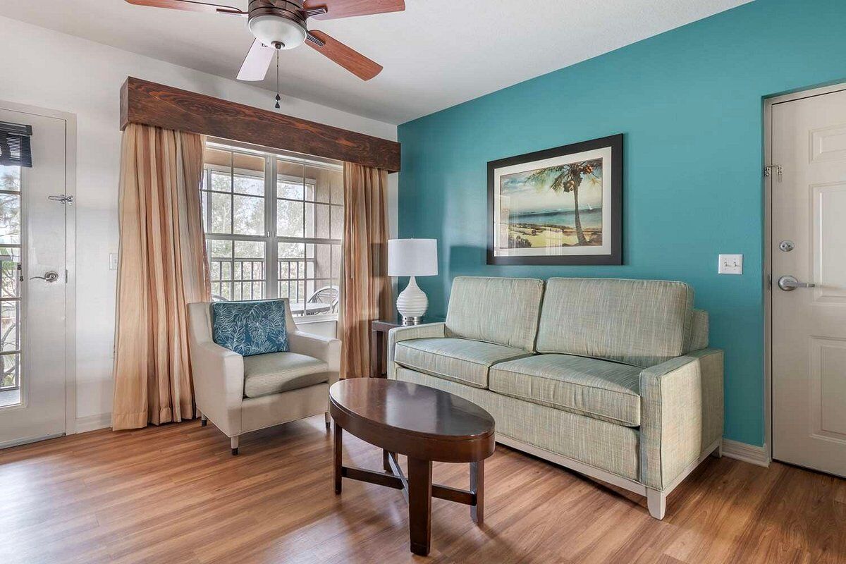 At Aqua Sol, you'll enjoy two bedroom-two bathroom townhouse villas as well as one-bedroom, two-bedroom, and three-bedroom villas, all equipped with a living room, dining area, full kitchens and washer/dryer. The two-bedroom townhouse villa sleeps eight and offers two queen size beds and two sofa beds. The one-bedroom villa sleeps four and offers a queen size bed and sleeper sofa. The two-bedroom villa sleeps six and offers a king-size bed, two full or twin beds and a sleeper sofa. The three-bedroom villa sleeps ten and offers one king-size bed, one queen bed, two full beds, and two sleeper sofas.