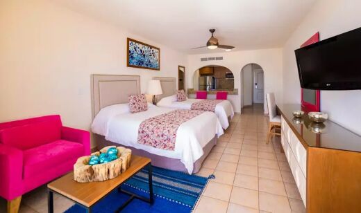 Villa del Palmar Beach Resort & Spa Cabo San Lucas lies nestled along the swimmable sands of Medano Beach, offering a luxe yet family-friendly base in Mexico’s Baja peninsula. The resort features multiple outdoor pools, hot tubs, beach loungers, non-motorized water sports like paddle-boarding and kayaking, and an on-site grocery/deli market for added convenience. Guests also have access to the award-winning Desert Spa, fitness center, lighted tennis courts, and a lively activities program under the warm Baja sun.