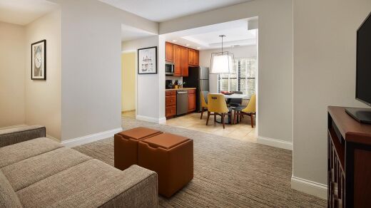 Winding throughout Sheraton Vistana Villages are spacious one-, two-, and three-bedroom timeshare villas. Offering all the luxuries of a resort home, villas are equipped with a kitchen, whirlpool in the master bathroom, TV with DVD player and private balcony or patio. These sleek and modern villas are also outfitted in bright colors, glossy woods and premium linens that evoke the sun-soaked spirit of Florida. And of course, all villas feature complimentary Wi-Fi access.